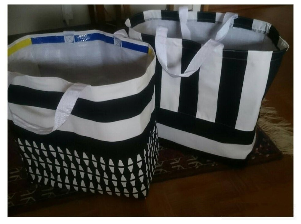 Denna blogg med tillhörande youtubekanal och Facebooksida skulle ju bara handla om smarta tips för klädsömnad. Men ibland kan jag liksom inte låta bli att flika in en katt bland hermelinerna. När vi handlar mat så självscannar vi alltid, du vet, går runt med en egen scanner i butiken och lägger ner varorna direkt i den egna kassen. Jag har sytt massor med kassar, jag vill ju undvika plasten av miljöskäl, men ingen har varit optimal till just självscanning eftersom man då vill ha en kasse som står upp av sig själv. Därför kom jag på att jag tar en färdig kasse som jag tycker att fungerar bra och klär den i ett snyggt kraftigt tyg. Sagt och gjort, jag klädde 4 kassar och har använt dem sedan dess och vi älskar dem. Snygga och starka. Dessutom så behöver man inte skämmas för att ha fel logga i fel butik… Sy du några du också! Perfekt ‘gåbortpresent’ dessutom! Jag tror att du fixar det på mindre än en timme även om du är lite ovan! Lycka till!