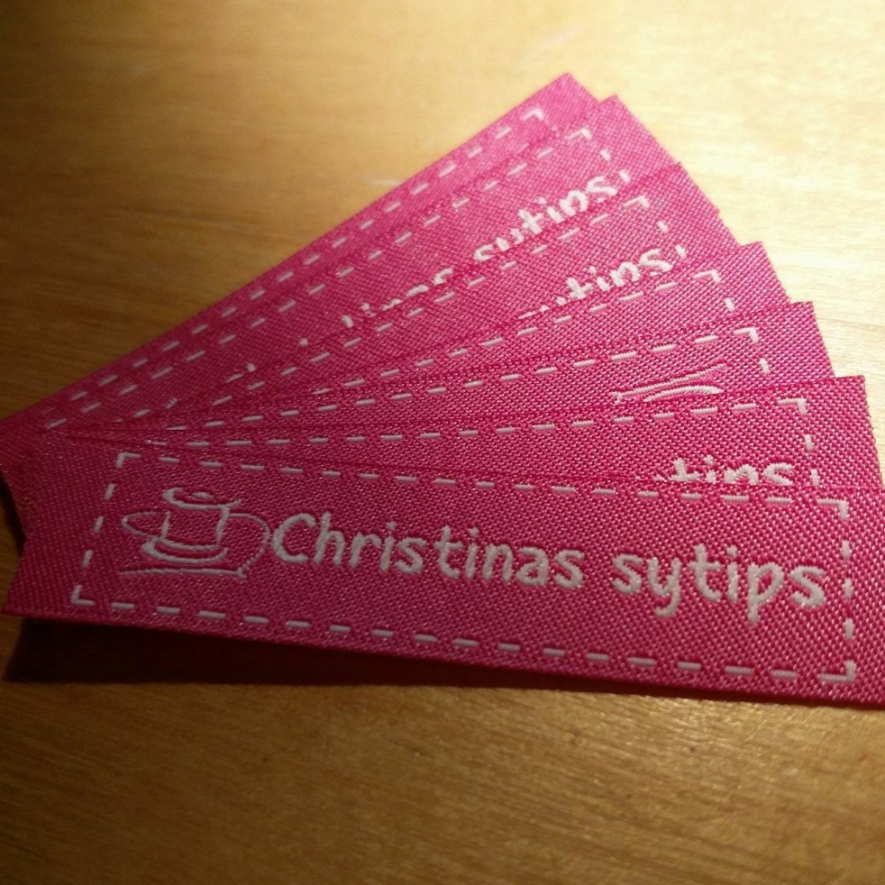 Idag så kom äntligen mina nya etiketter! Vad nöjd jag blev. Jag har precis som tidigare valt vävda etiketter för jag tycker att det är så fint. Tidigare har jag haft etiketter med invikta kortsidor och använt limpenna eller Vliesofix när jag monterat dem för att det skulle bli fint och rakt. Denna gång valde jag stryka-på-etikett direkt, jag kommer visserligen att sy runt om dem ändå, men det kommer ju att gå så mycket lättare.