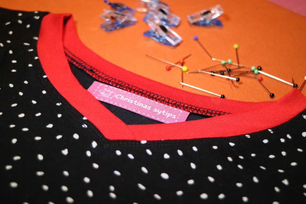 Nu kommer ännu en önskefilm! Det är så många som frågar efter hur jag syr en v-ringning på en T-shirt. Det går att göra på många olika vis. Jag har tänkt att göra en liten svit av filmer med olika varianter. Här kommer den första. Här visar jag hur jag gör en V-ringning som går omlott framtill. Det ser snyggt och välsytt ut. Det är det viktigt att sy med jämn sömsmån runt om, annars blir kanten olika bred. Bemärk att jag skär inte av något med overlocken mer än ojämnheter och trådar.