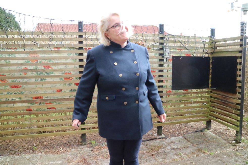 Vad härligt det är när ett plagg jag jobbat mycket på äntligen är klart! Samtidigt är det en tomhetskänsla. Så många timmar jag lagt ner på denna kavaj som inte syns. Små små prickstygn sydda förhand runt kanterna, handsydda knapphål och lite annat smått och gott. För att inte tala om att sy i knappar, ångra sig och klippa bort och sätta i andra knappar! Ett av mina absolut mest kommenterade inlägg är min förfrågan på ‘Christinas sytips’ på Facebook om vilka knappar jag skulle ha på kavajen. Jag följde resultatet (blanka silverknappar) och det blev ett ‘för hårt’ uttryck, det passade inte mig. Jag reste iväg till närmaste välsorterade tyg- och sybehörsaffär och hittade dessa knappar. Tyvärr är de guldiga, men jag hittade inga silvriga som jag gillade och som var i lagom storlek. Så bli nu inte arga på mig, jag älskar verkligen ert engagemang! Så ett stort tack till alla som engagerade sig i mitt dilemma. Här ser ni resultatet!
