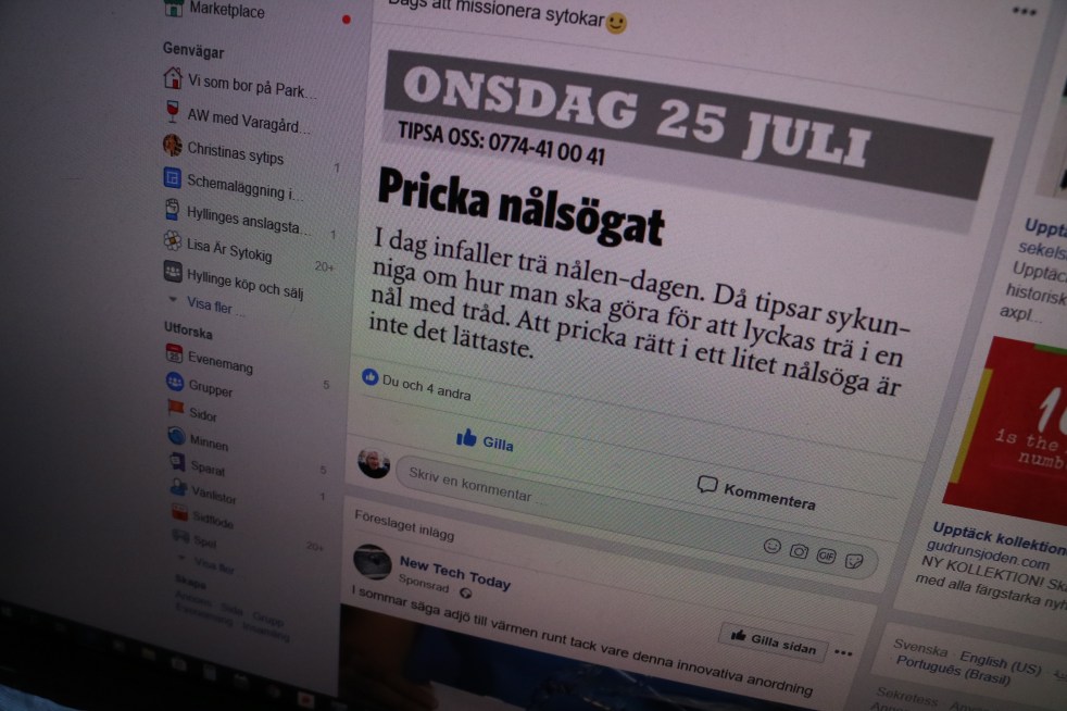 Har du missat det, att det är den eminenta ‘trä nålen-dagen’ idag onsdagen den 25 juli? Jag hade missat det helt, men min kära kusin Cia upplyste mig om detta idag och då var jag ju bara tvungen att snickra ihop en film om att trä nålar. Som slöjdlärare i mjuka material (ja, syfröken heter det inte längre i skolans värld) märker jag tydligt att detta är väldigt svårt för många. Bra ljus, bra sax och rätt nål till rätt tråd så går det som en dans. I slutet av filmen visar jag att det inte går att trä en för tjock tråd i en tunn nål.
