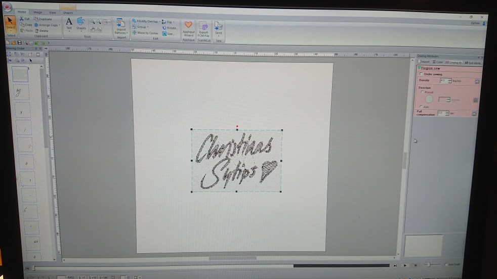 Jag har länge velat sy en egen logotype. Jag köpte en jätteliten Brother brodérmaskin för att få till detta, men jag har inte riktigt haft tid eller energi för det. Nu ikväll har jag testat, och det blev ganska bra, i alla fall för att vara det allra första utkastet. Jag måste tillägga att det här med broderisymaskiner inte riktigt är min grej, så jag kan varken datorprogrammet ordentligt eller symaskinen. Men, vi håller på att lära känna varandra nu! Jag har nu bara kört på programmets automatiska inställningar och då är detta väldigt enkelt. Jag gör detta på samma sätt med mina lite äldre elever i skolan, de får rita en bild som de sedan syr på symaskinen, så lär vi oss tillsammans! Så kul! Här visar jag mina stapplande försök till en sydd logotype! Tanken är att jag ska rita en finare logotype och sedan sy den när jag kan programmet och symaskinen bättre. Men, man måste ju testa och träna först.
