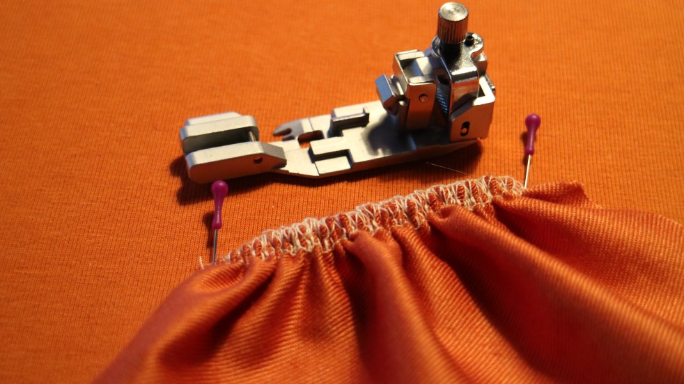 När jag var på Sy- och hantverksfestivalen i helgen så blev jag så sugen på att skaffa lite specialpressarfötter till min overlock, speciellt sugen var jag på rynkfoten. Tänk att rynka, sy fast och kasta en volang i ett enda moment! Sagt och gjort, rynkfot fick det bli! Nu har jag testat den och den är så kul!