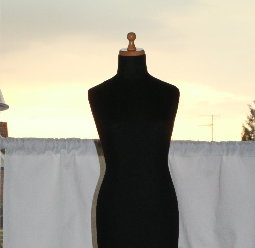När jag gick min sömnadsutbildning för många år sedan så fick de som gick året efter mig göra modeller på halvbyster. Då tittade jag längtansfullt på dessa, tänk om man hade haft en sån och testa idéer på… åh… Drömmen var ju att bli modedesigner i Paris på den tiden. 😉 Nu blev det inte så, jag blev textillärare i Bjuv och er syfröken på nätet istället. Inte så dumt det heller! ❤ Men drömmen om den där lilla smidiga provdockan har alltid funnits där i bakhuvudet, åtminstone då och då under alla dessa år. I onsdags kväll när jag satt och tittade på Bergman och Johanssons hemsida så hittade jag först en fin halvbyst från Stockman i Paris för gräsligt mycket pengar, men efter en stund hittade jag denna för ett ‘köpbart’ pris! Så jag slog till! Och idag kom den (supersnabb leverans!) och jag är kär! Så fin! Storlek 38 men i halvstorlek, alltså bystmått 44 istället för 88!