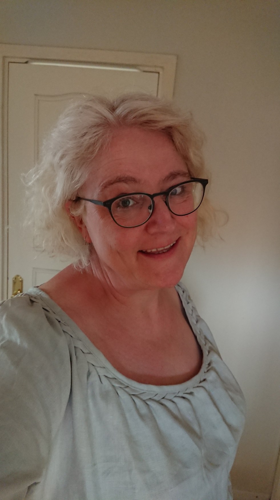 Min blus med flätad kant är nu klar. Jag beslutade till slut att bandkanta halsringningen eftersom jag var osäker på om den handsydda smocken skulle hålla för många tvättar och att åka av och på kroppen. För att kanten skulle bli riktigt jämn och fin så tråcklade jag ytterkanten först och sen sydde jag fast en 4 cm bred remsa som jag klippt på skrå på tyget. Först overlockade jag bandets ena långsida. Sedan sydde jag fast den andra sidan längs rätan, pressade in bandet mot avigan och sydde fast bandet med en stickning från rätsidan. Det blev riktigt bra. Kantens färdiga bredd är ca 1 cm. Nu har jag en fin blus att ha på mig när vi är bortbjudna på torsdag! Lite press först, bara!