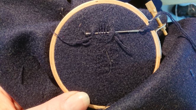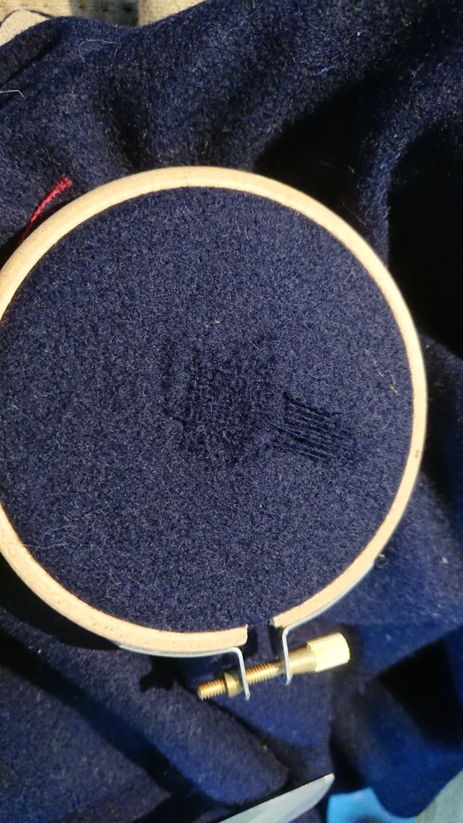Jag startade att sy en folkdräkt när jag gick i högstadiet och nu ska den bli klar! Men när jag plockade fram kjolen så hittade jag två ganska stora malhål. Idag tog jag tag i detta och lagade. Det blev ganska fint. Jag gissar att det är väldigt autentiskt med lagningar. Så här blev det!