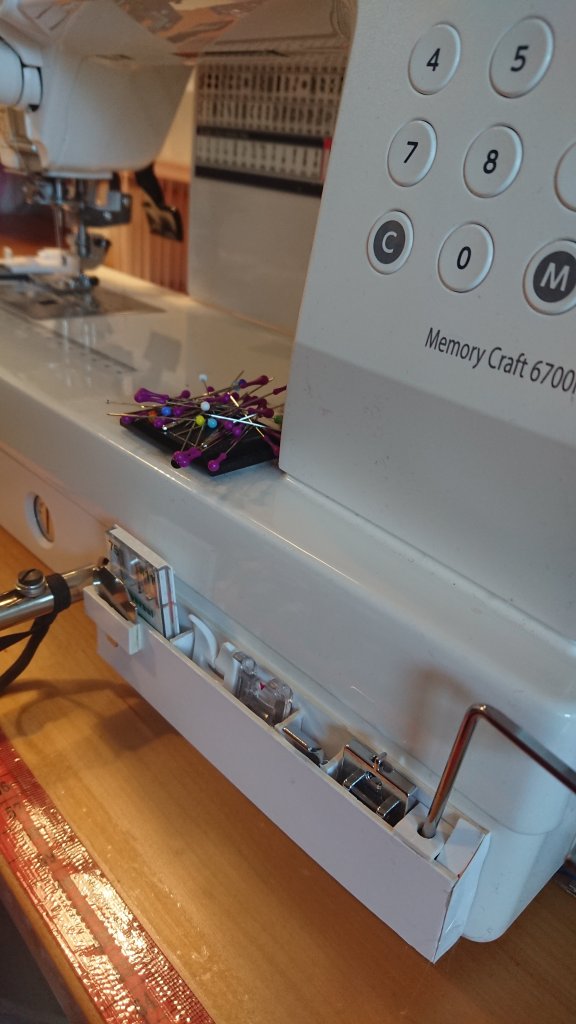 Är jag ensam om att göra en massa semiviktiga saker när jag har nåt riktigt viktigt som jag måste göra idag? Jag tror att vi är många som får städat bland trådrullarna eller i städskåpetsådana dagar. Jag har gjort en hållare till symaskinstillbehören. Visst var det viktigare än ALLT annat idag? 😉 💞 Bra blev det i alla fall. Jag är alltid rädd att pressarfötterna ska hamna på golvet och ätas upp av stora stygga dammsugaren. 🤣 Jag har byggt ihop den av 2mm tjock kartong och limpistol. Nu kanske du undrar om dammsugaren ätit upp många av mina pressarfötter… Nej, inte en enda! 😍