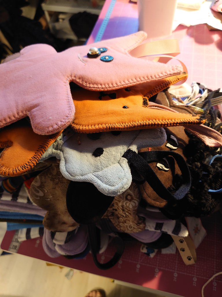 Tips! De runda äronen eller utan öron är enklast att sy och du behöver inte sy stickningen runt om på slutet om du syr i trikå. Jag har testat att göra några utan stoppning, det funkar fint när man syr i lite kraftigare trikå/jogging! 🙂
