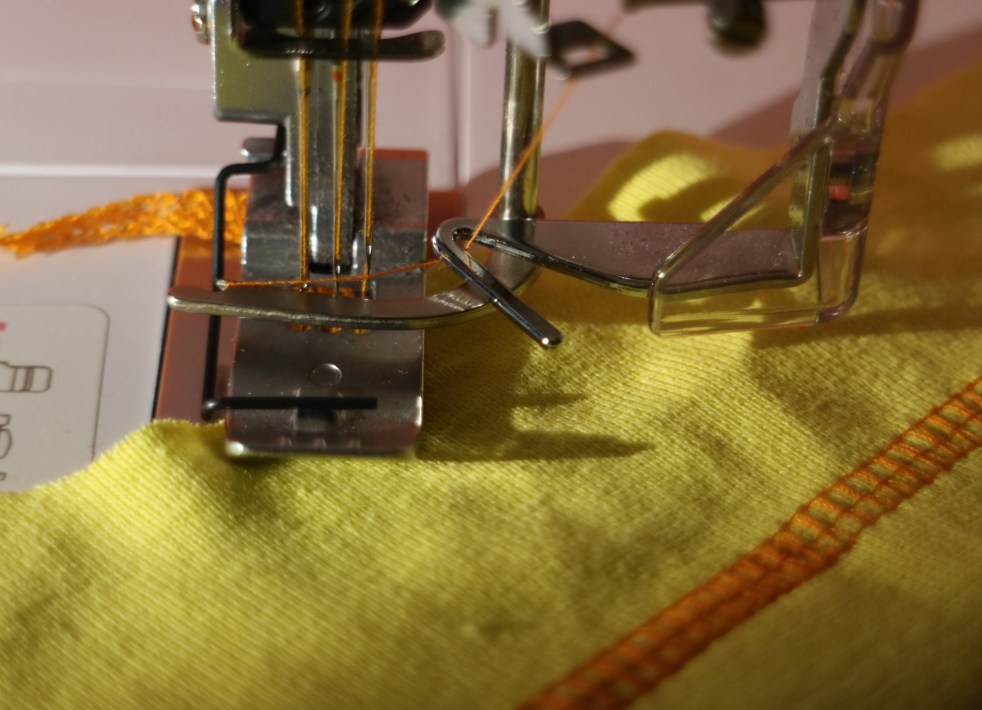 • Sömmen med tvillingnål kan du sy på de flesta vanliga symaskiner, nålen kostar runt en femtiolapp och sömmen är lätt att sy.  Nackdelen är att plagget inte tål att töjas så mycket som ett köpt plagg vilket gör att undertråden lätt slits av på baksidan av plagget och att sömmen sedan lossnar på framsidan efter tvätt. Detta beror alltså inte på symaskinen utan på användaren av plagget! Obs! Använd en tvillingnål för trikå!